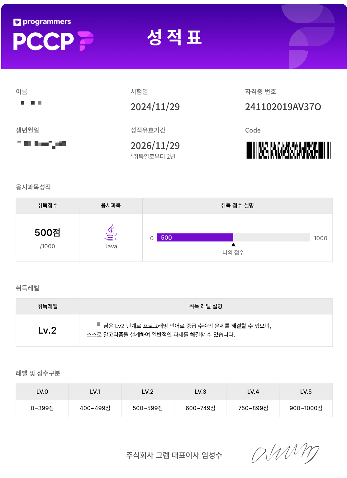 # 시험을 보게 된 동기학교를 통해 PCCE와 PCCP를 참가할 기회를 얻었다. 평소에 프로그래머스를 꾸준히 풀지는 못하였지만 앞으로 코딩 테스트도 참여해 보기 위해 도전한다는 마음으로 참가하