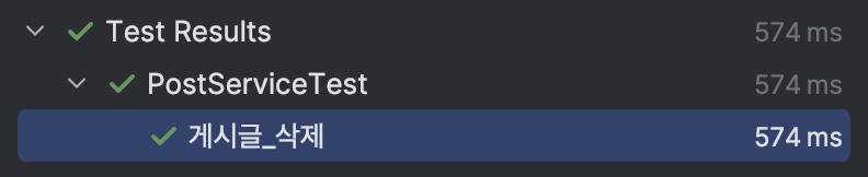 - 생성된 게시글은 한 개였고 이를 삭제했으니 findPostByMember로 검색한 결과는 0으로 예상된다.