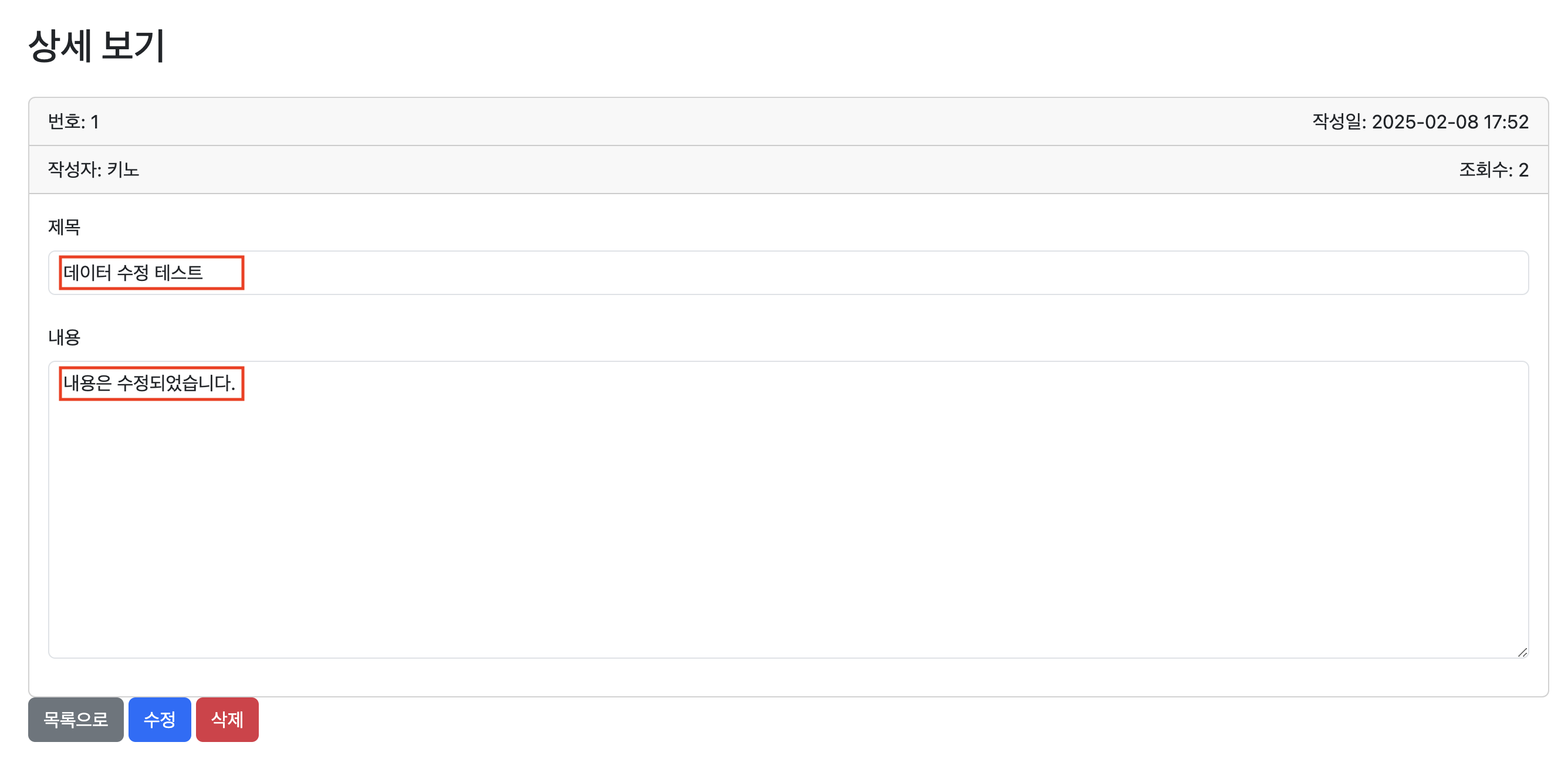 제대로 수정 작업이 완료되면 다시 게시글 상세 보기 페이지로 이동한다.