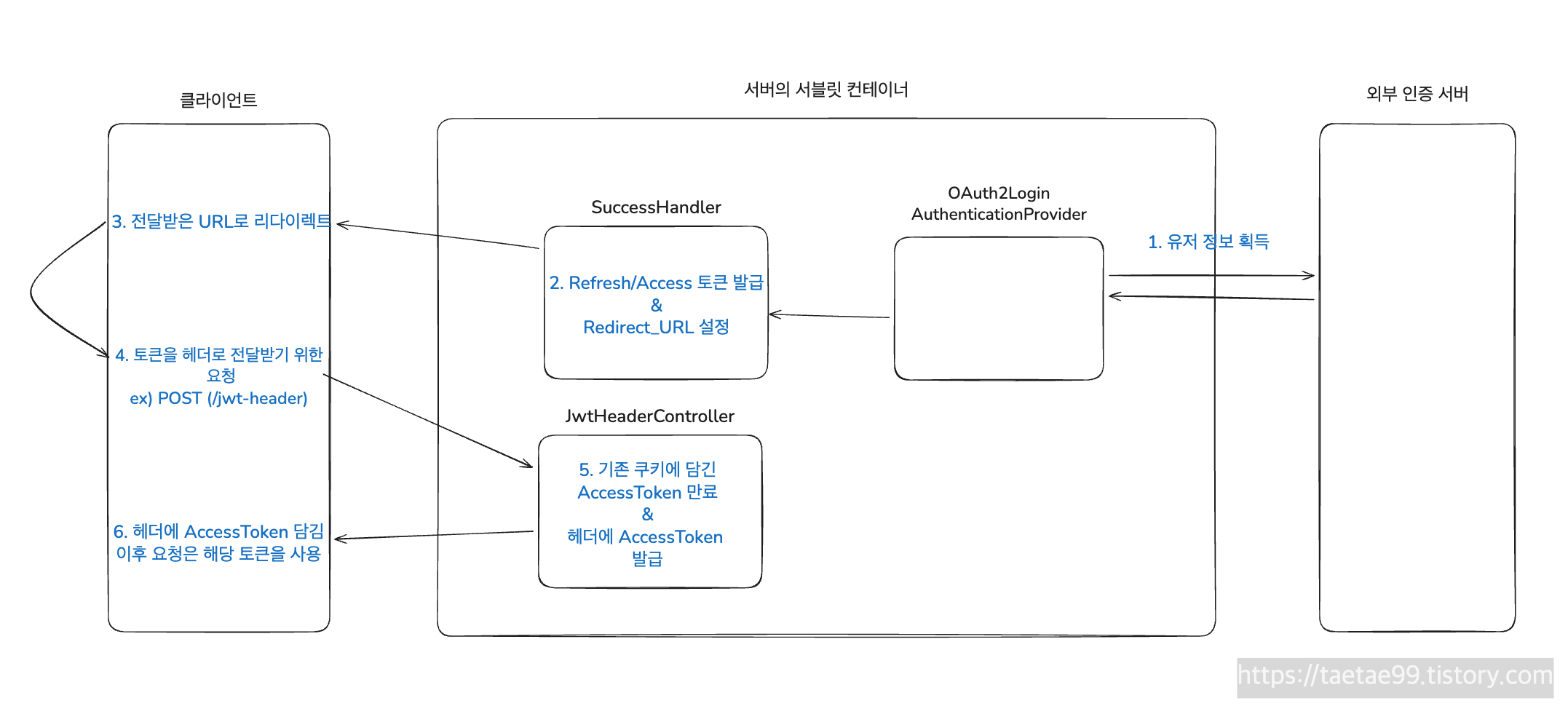 - 서버의 OAuth2LoginAuthenticationProvider는 외부 인증 서버로부터 유저 정보를 획득합니다.